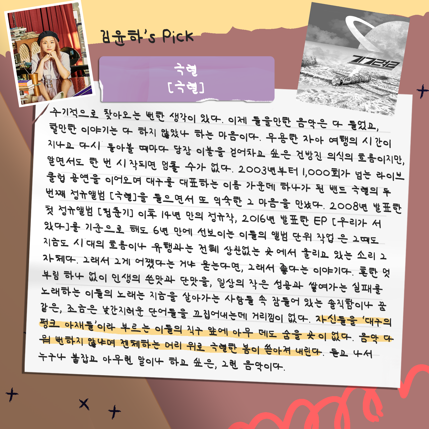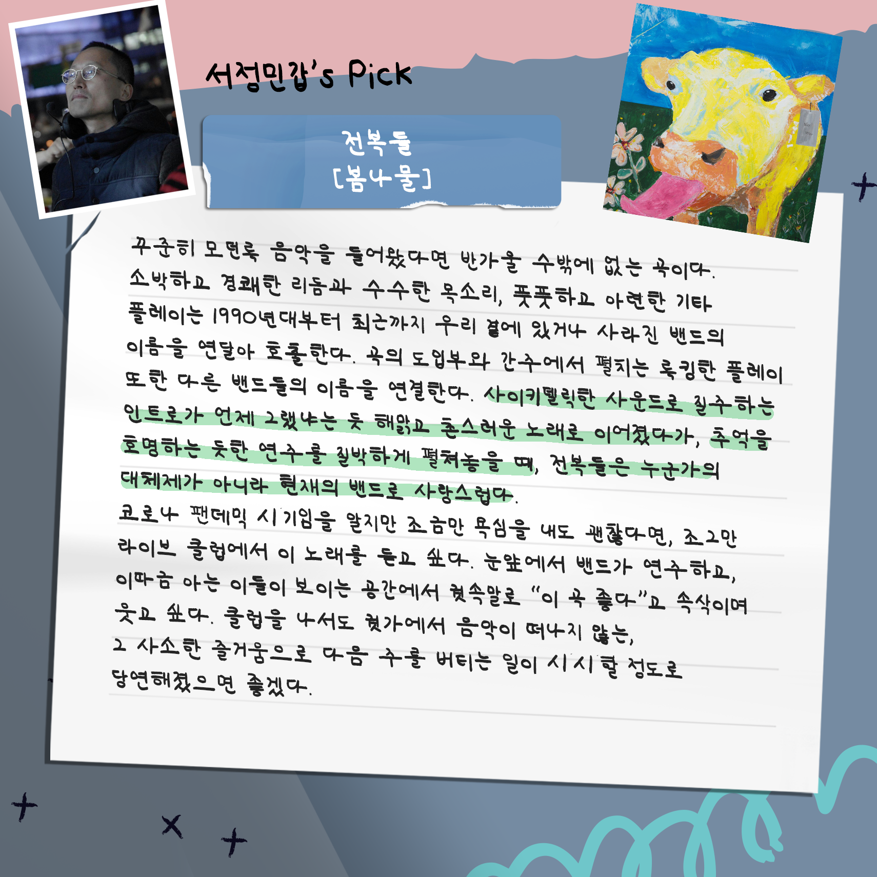 대중음악 의견가인 서정민갑 씨와, 평론가인 김윤하 씨가 들어 보고 고른 추천곡들입니다.