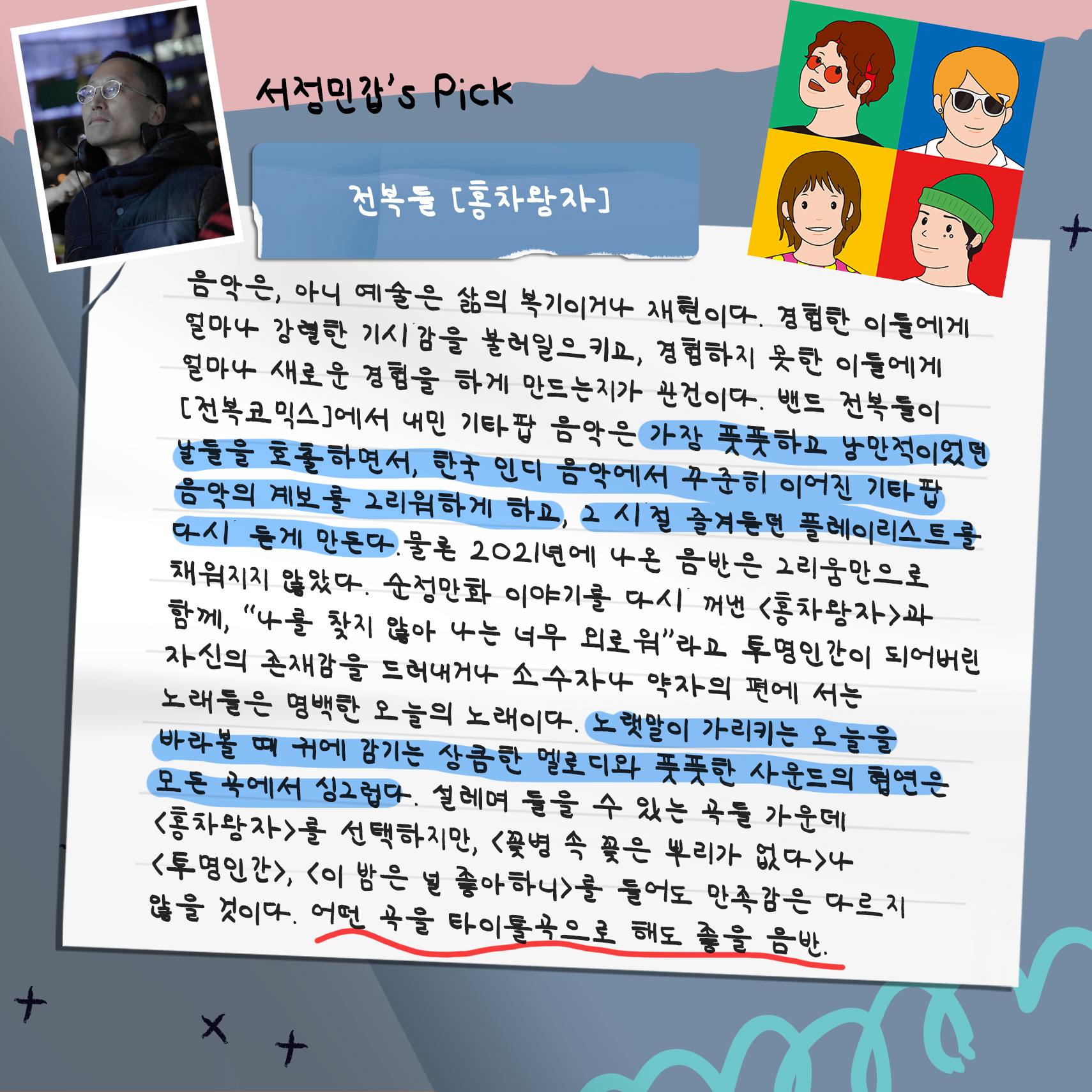 대중음악 의견가인 서정민갑 씨와, 평론가인 김윤하 씨가 들어 보고 고른 추천곡들입니다.